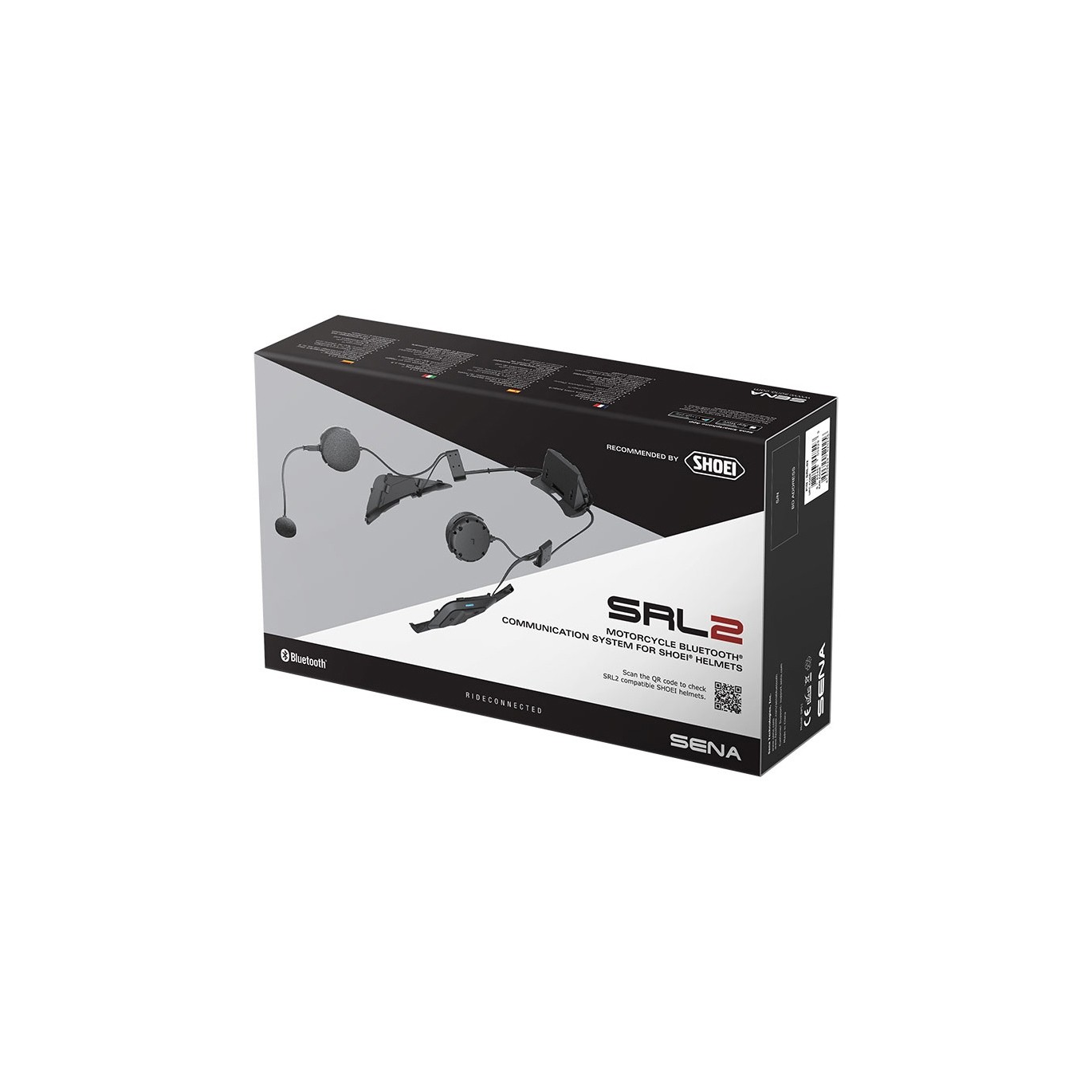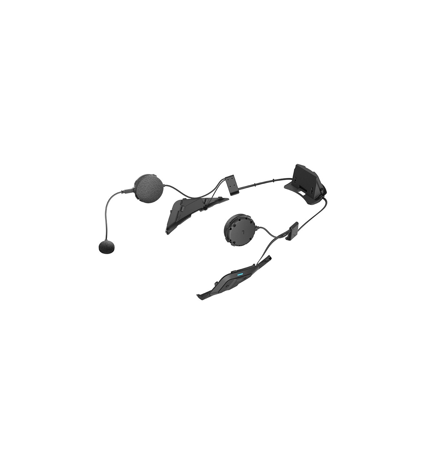 Tanto en el casco de moto Shoei Neotec 2, GT-Air 2 como J-cruise 2 se ha realizado un estudio y un diseño para que el intercomunicador pase totalmente desapercibido en el casco sin que esto afecte a la seguridad del mismo. El casco dispone de dos zonas triangulares en la base a cada lateral para unir el módulo y la antena del intercomunicador. Cada unidad quedará fijada mediante unas pequeñas pestañas de las ranuras. La batería quedará instalada en el espacio entre la calota y el forro interior en la parte posterior del casco. Cada zona dispone de una tapa para que el aspecto del casco no se vea afectado en caso de no llevar instalado el intercomunicador.