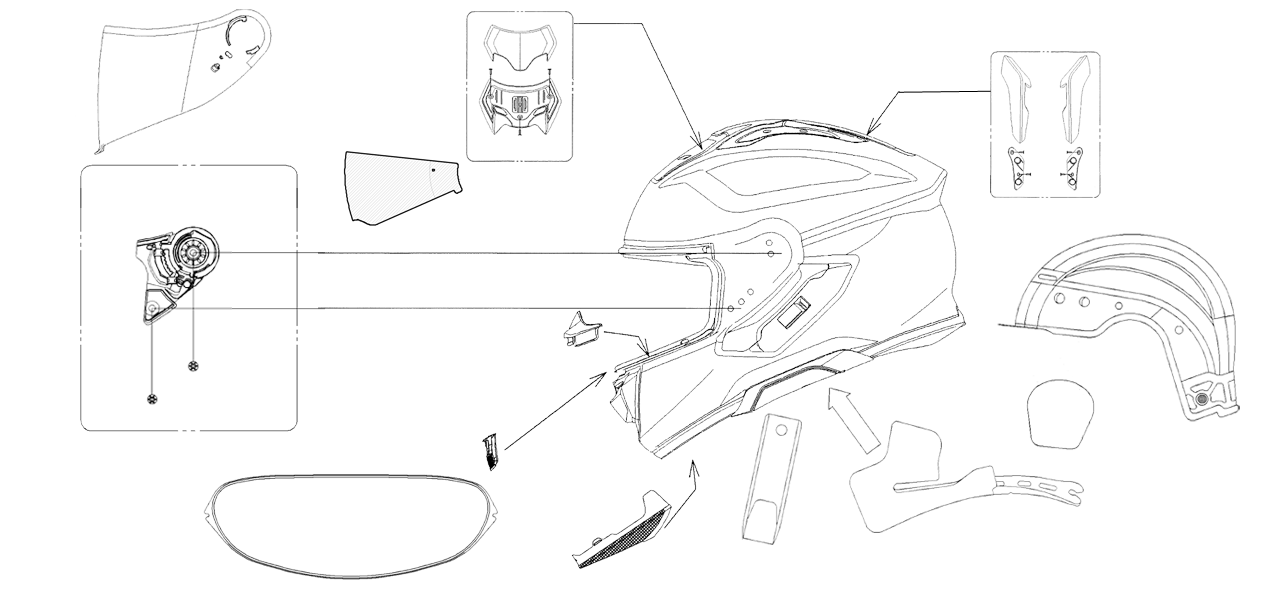 RECAMBIO SHOEI MECANISMO CNS-1C PANTALLA GT-AIR 3 CON TORNILLOS