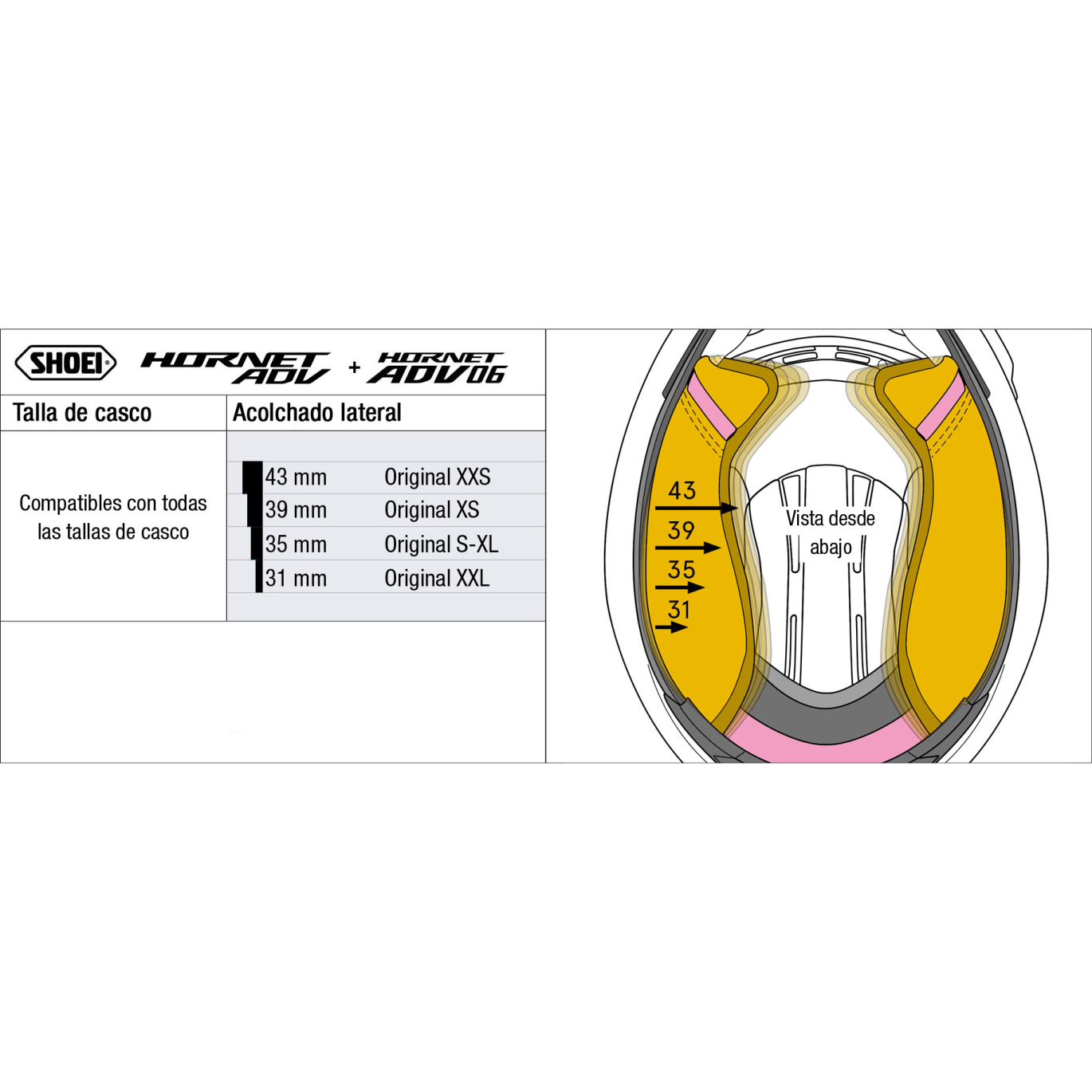 RECAMBIO SHOEI ACOLCHADO LATERAL HORNET ADV